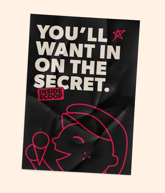 "Inside Scoop" is a conceptual ice cream shop designed with the goal of avoiding cliches. This is accomplished through the implementation of a newspaper boy mascot and minimal but vibrant color palette.