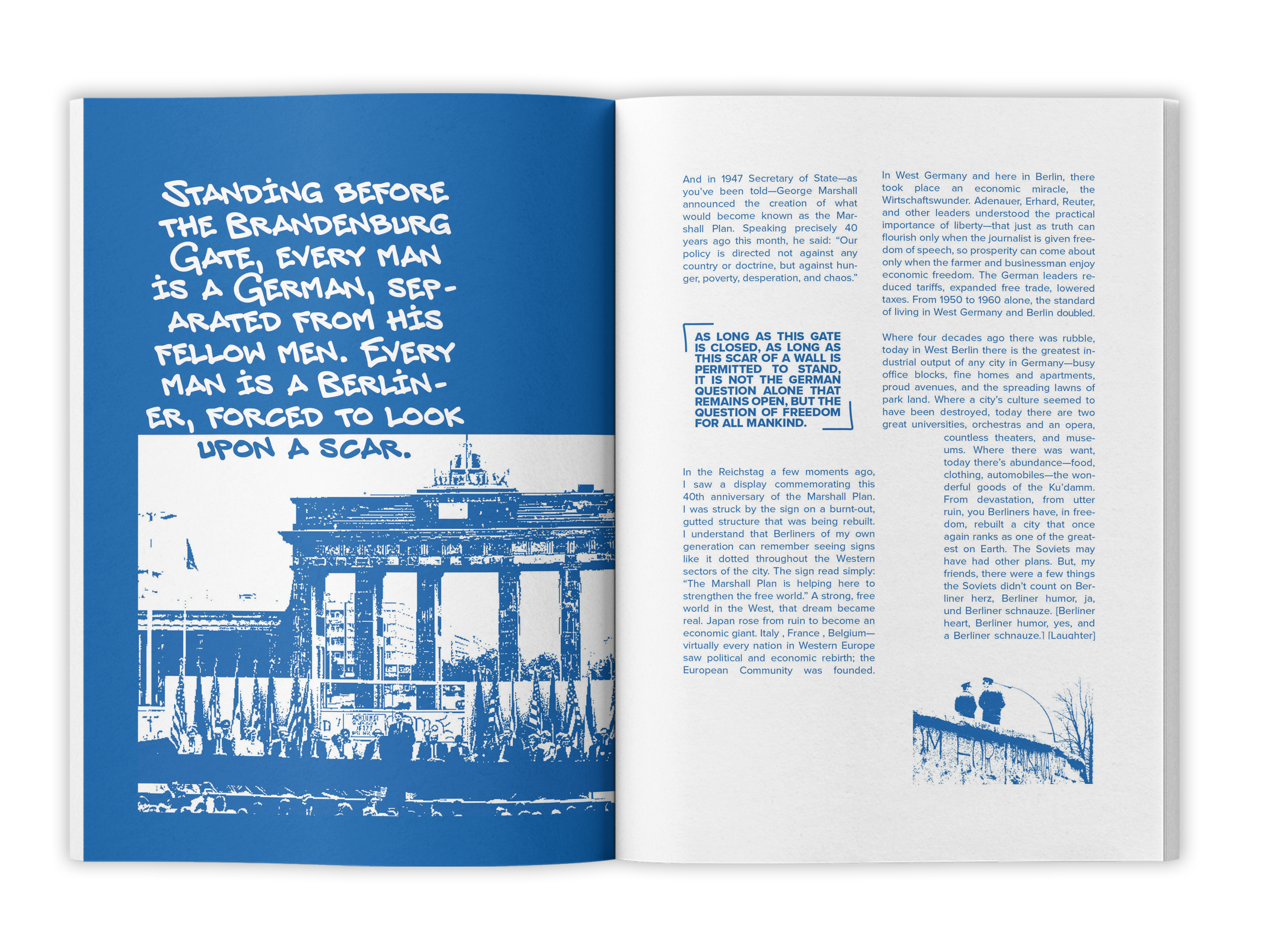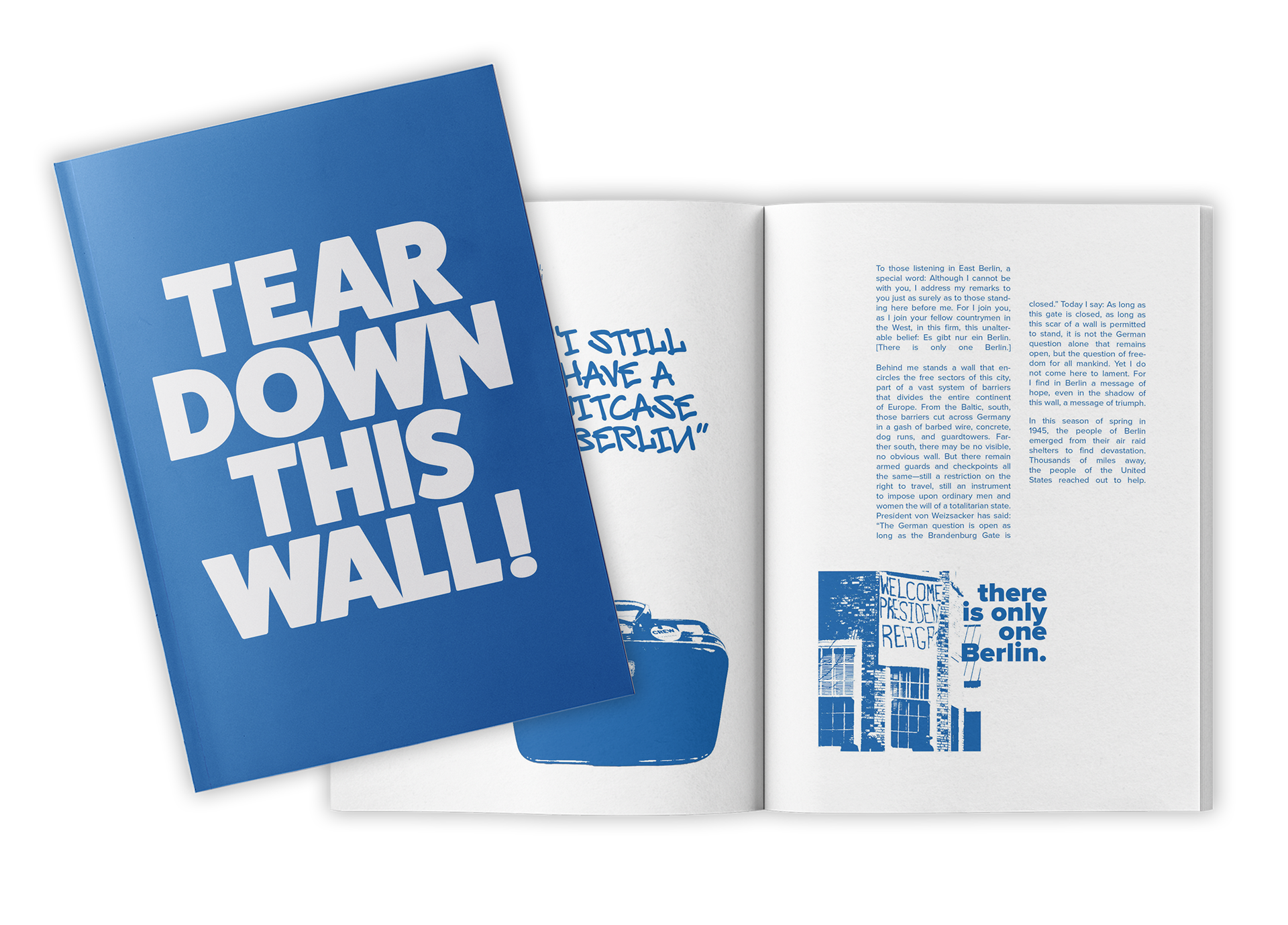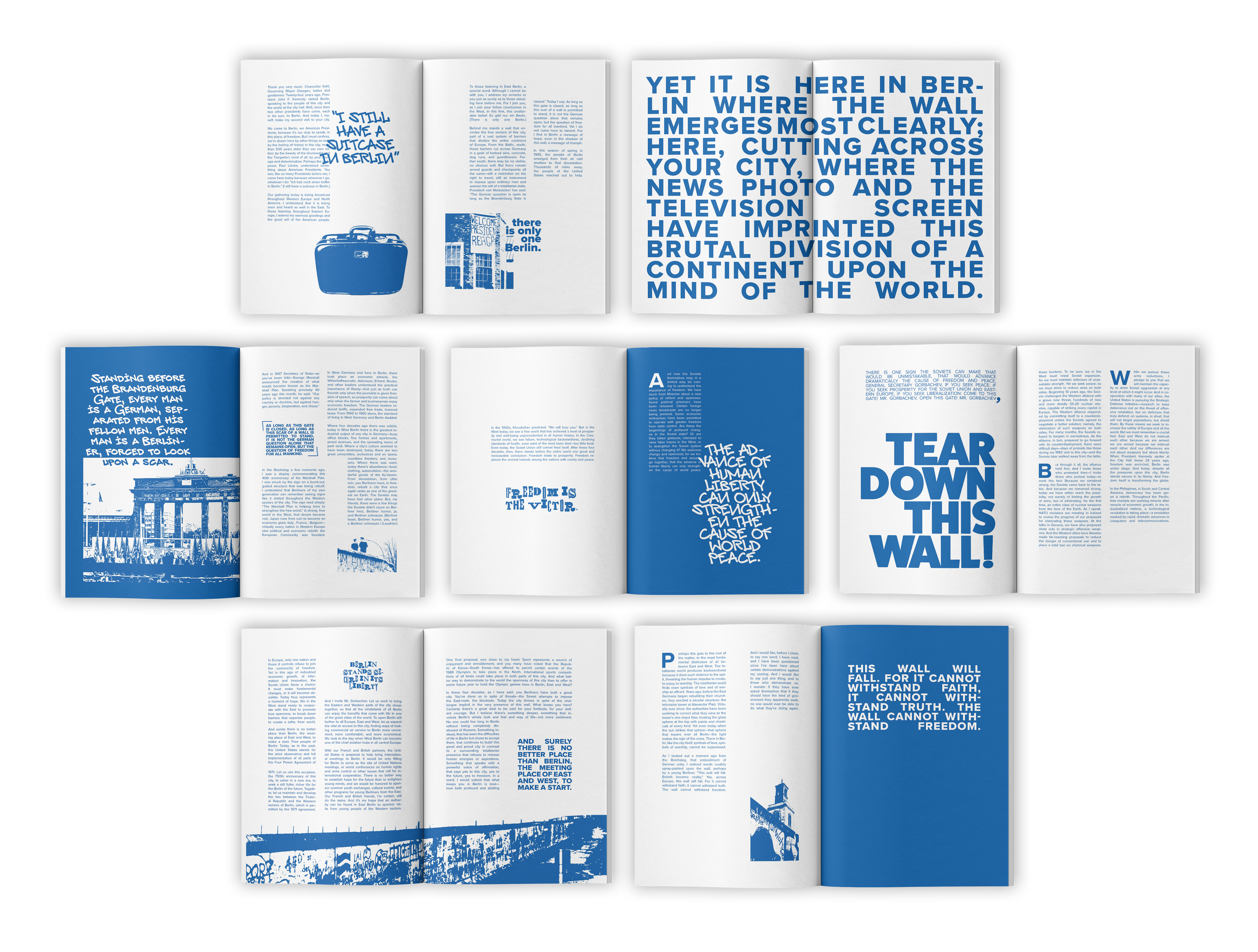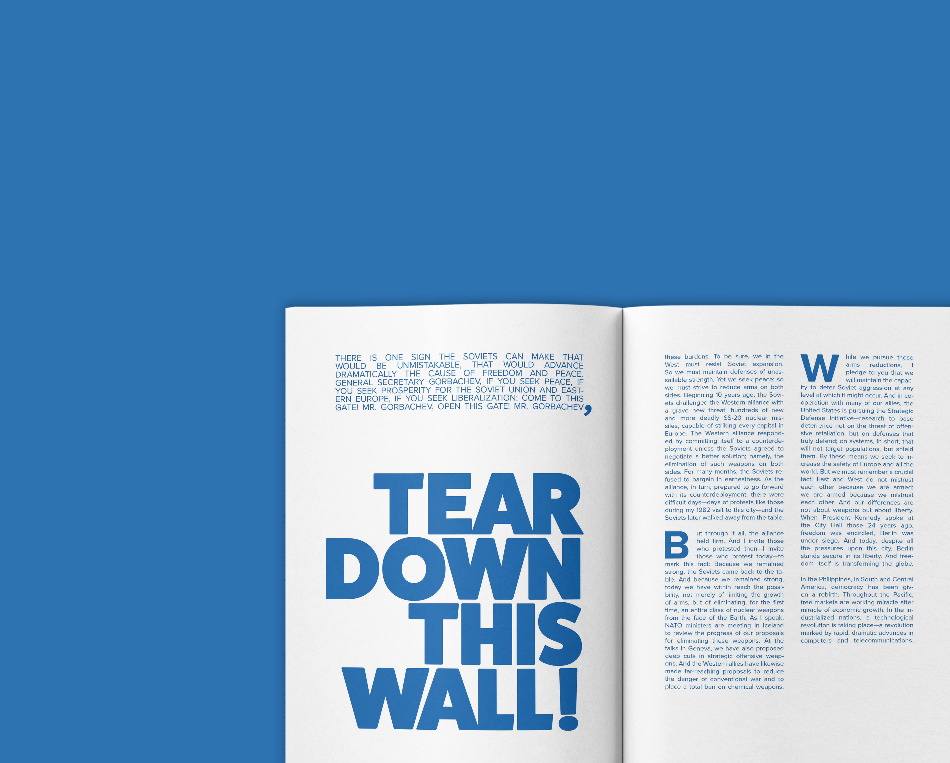 "Tear Down This Wall" is a publication created using Ronald Reagan's 1987 speech of the same name. The publication's text was taken entirely from a transcript of the speech.