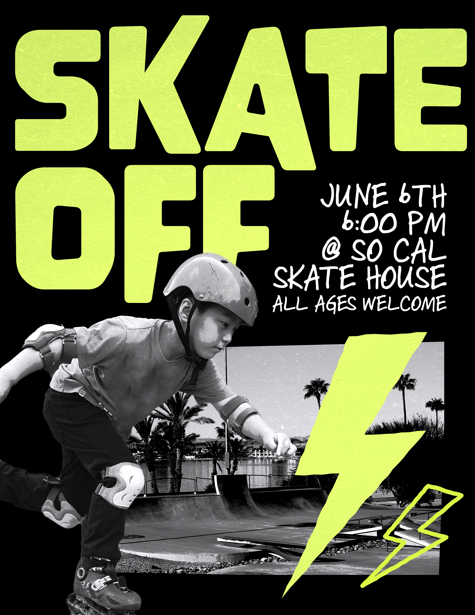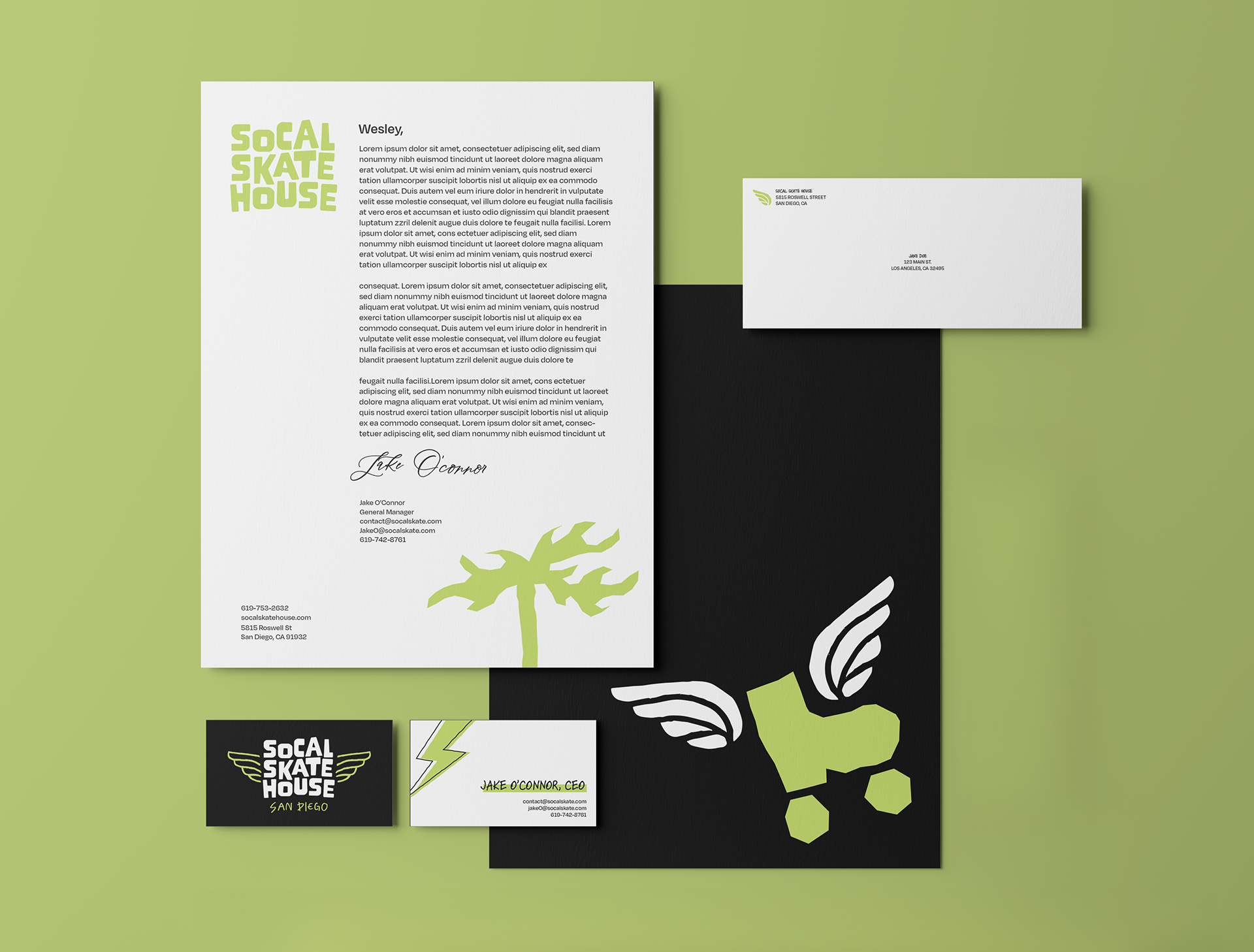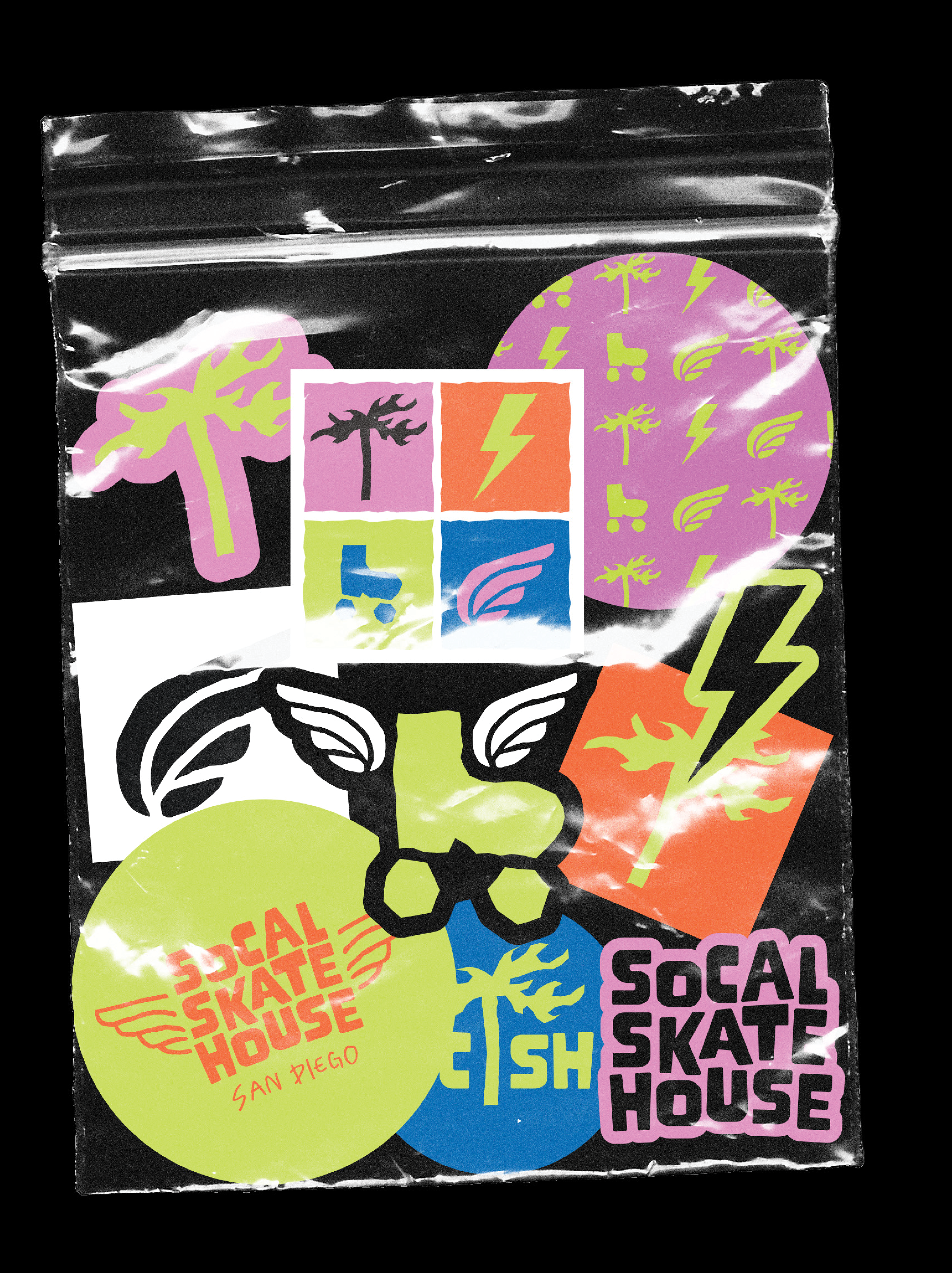 So Cal Skate House is a fictional skate park and outdoor roller rink located in San Diego, California. I worked with a classmate to design its brand identity and collateral materials.